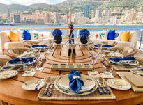 The offering is completed with tableware and cutlery designed for life at sea — functional, well-balanced pieces that combine technical suitability with understated elegance.